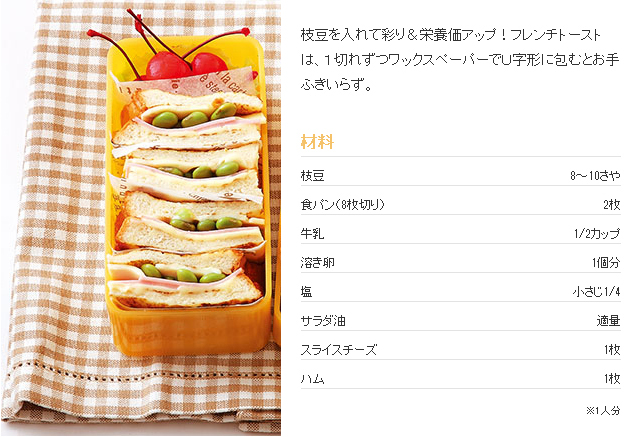 1.枝豆はゆでてさやから出しておく。食パンは牛乳、溶き卵、塩を混ぜ合わせた液につけておく。
